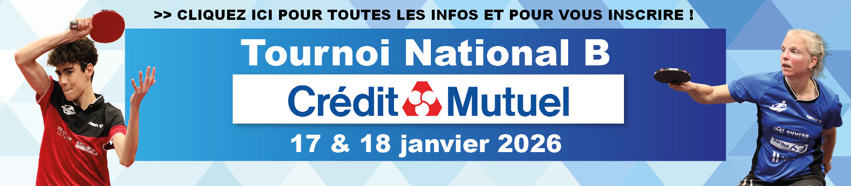 Championnat Régional Vétérans Individuels 2026 : samedi 14 et dimanche 15 Février 2026 au Mans Le Mans Sarthe Tennis de Table accueille le...