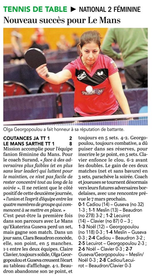 Maine Libre dimanche 8 mars 2020 : Le Mans continue son chemin