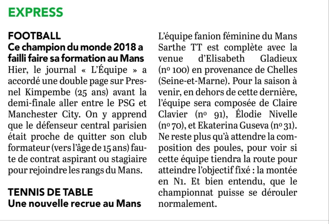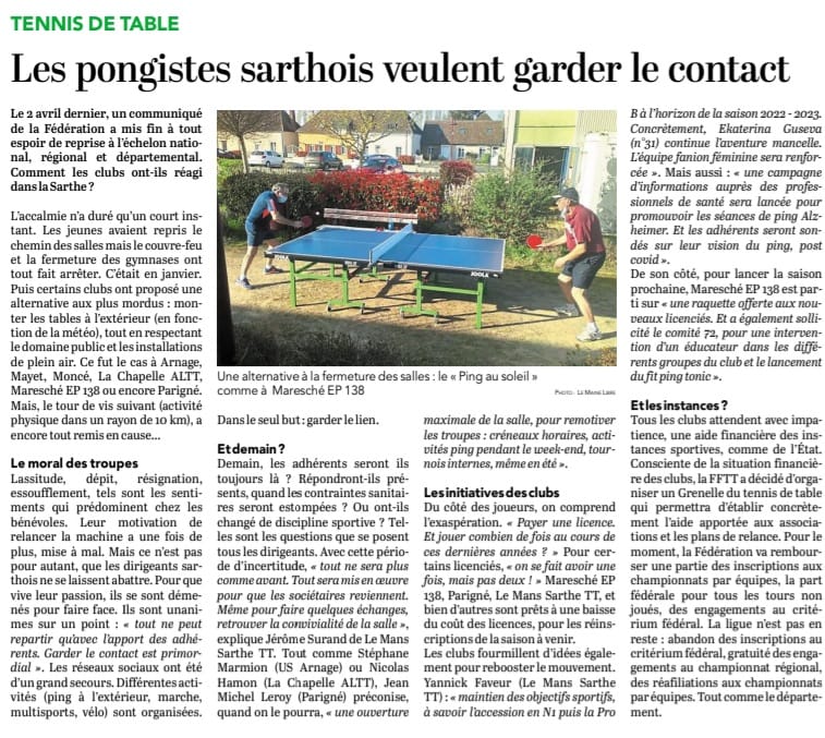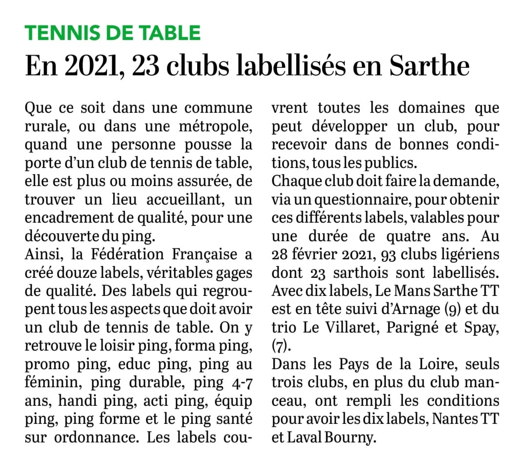 Maine Libre – samedi 6 mars 2021 : en 2021, 23 clubs labelisés en Sarthe